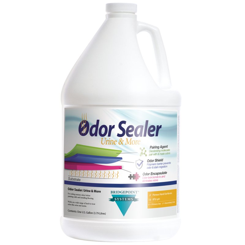 Bridgepoint Systems Odor Sealer es adecuado para su uso en superficies duras porosas como madera sin tratar, placas de yeso, mampostería, hormigón y más.