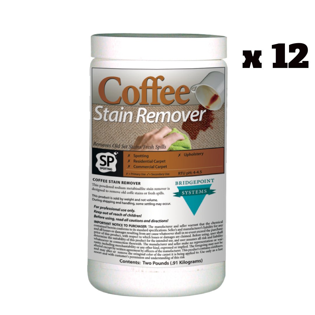 Bridgepoint Systems Stain Remover Coffee Stain Remover 2 Lbs es su solución ideal para eliminar eficazmente las manchas de café. Ya sea que se enfrente a derrames recientes, manchas persistentes u otras marcas desafiantes como manchas de agua u orina, este quitamanchas versátil proporciona resultados rápidos y confiables. Con su aplicación fácil de usar y acción rápida, es una valiosa adición a su kit de herramientas de limpieza, asegurando que las manchas de café ya no representen un problema.