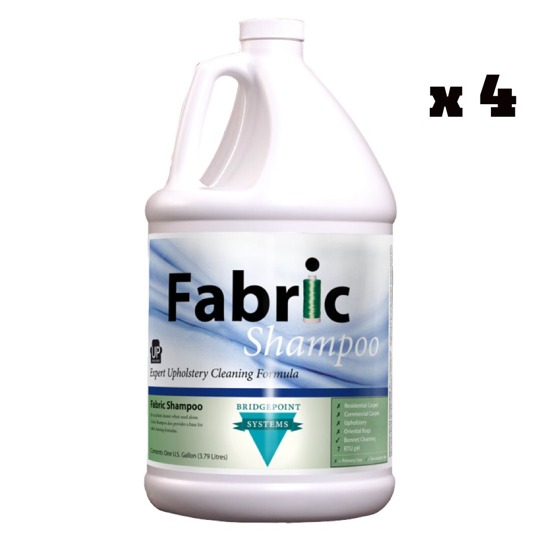 Fabric Shampoo se integra perfectamente en el proceso de limpieza de tapizados. Descompone y elimina eficazmente la suciedad, los aceites y las manchas de la superficie de la tela, devolviéndole su brillo y frescura. Para mejorar la eficacia, los profesionales pueden complementar Fabric Shampoo con otros productos químicos Bridgepoint según sea necesario. Además, enjuagar la tela con Fab Set, otro producto de calidad de Bridgepoint, garantiza una limpieza profunda y la eliminación de residuos, dejando una tapicería impecable.