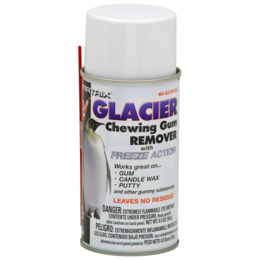 Si teme encontrar chicle, cera, masilla y otros residuos pegajosos en la alfombra, necesita Glacier Gum Remover. Este simple aerosol congelará inmediatamente la sustancia pegajosa, lo que le facilitará quitar los trozos frágiles y congelados.